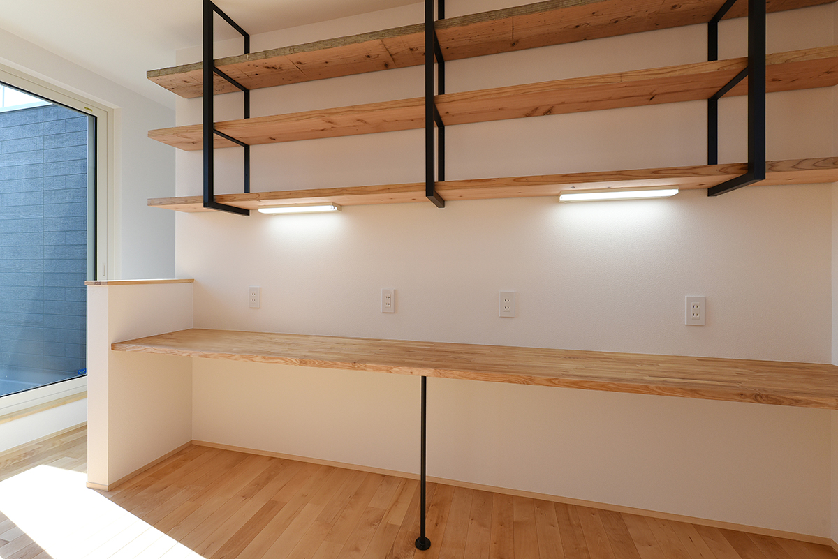 2,収納一直線!の周りに家事動線を組み込む