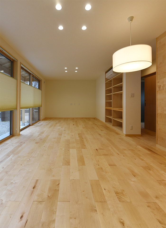 ご家族の新しい住まいへの要望は、自然素材を使いシンプルなデザイン。家事が楽にできる工夫。壁面収納。趣味と仕事の部屋。中学生になる子どもさんが巣立った後の住まい方。冬寒くなく夏涼しい住まいなど。
