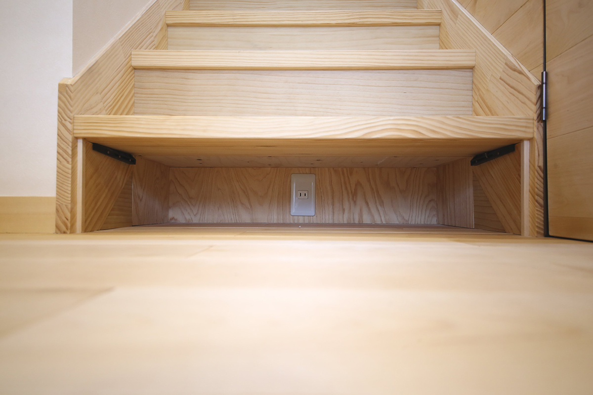 階段の一番下は掃除ロボット「ルンバ」用ピット。毎日ここから出勤、帰宅します。
