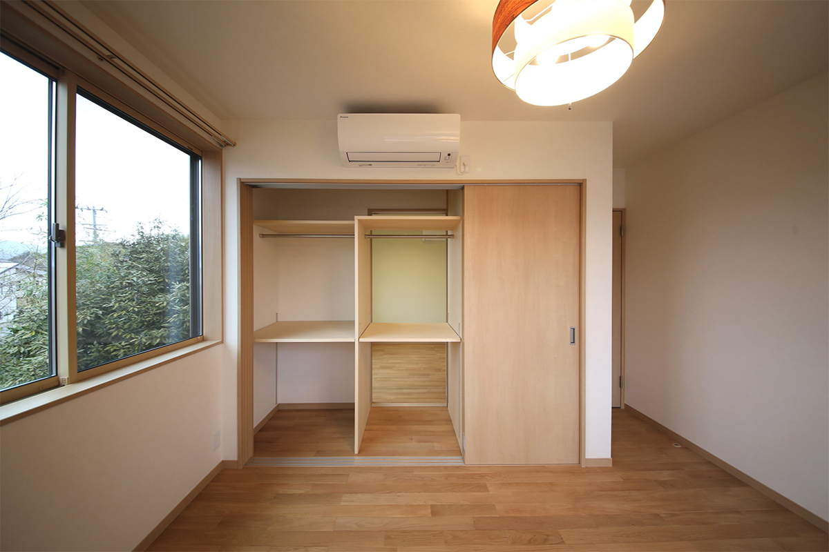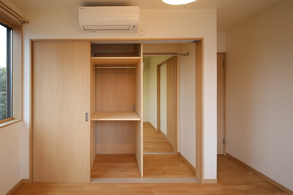 二間続きの部屋を将来有効活用できるように、収納部分を一工夫。詳しくはコチラをどうぞ。
