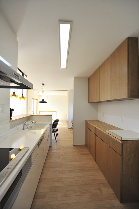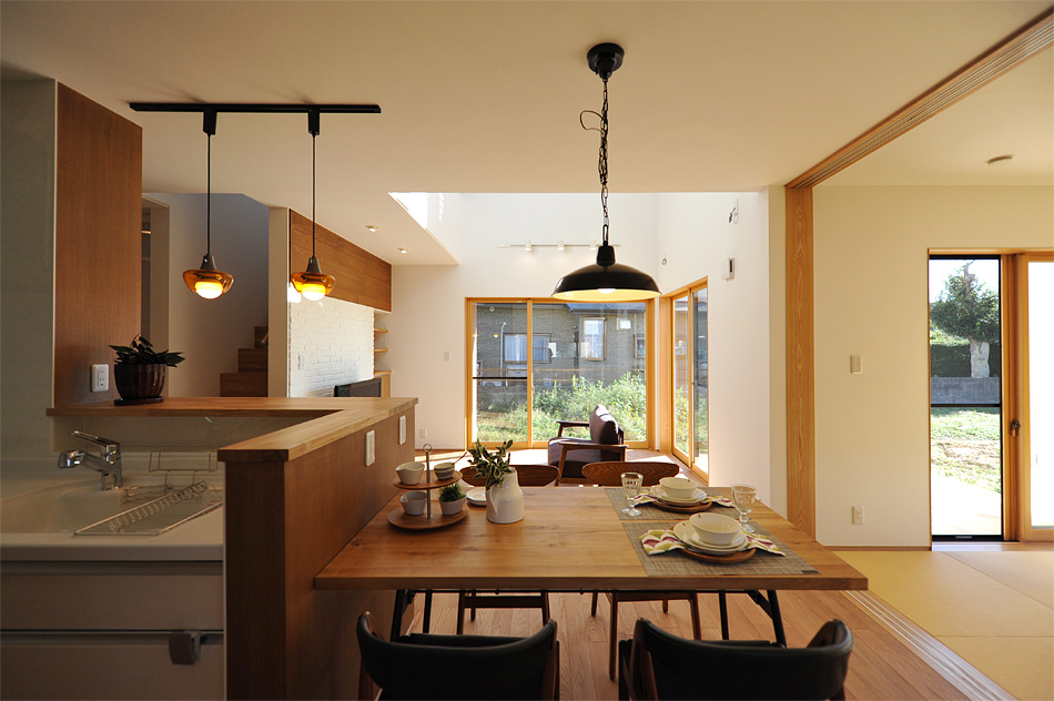 キッチンの横のダイニングはライフデザインがよく取り入れる手法。共働きのご夫婦の家事動線がぐっと短くなります。