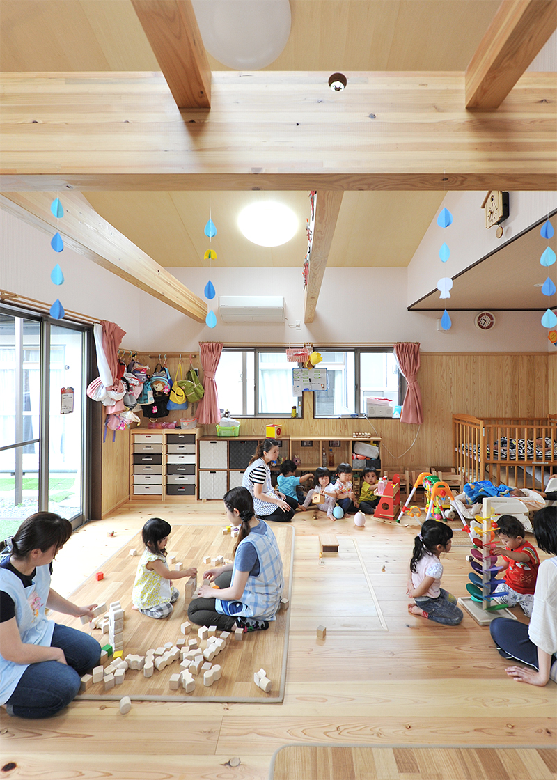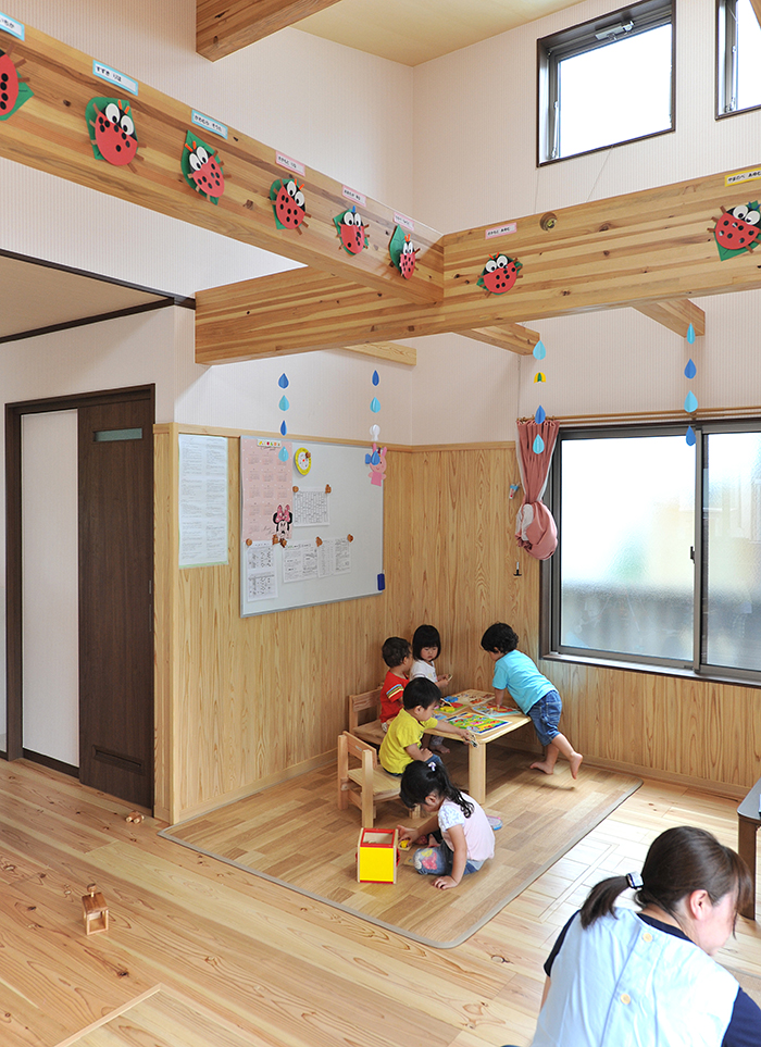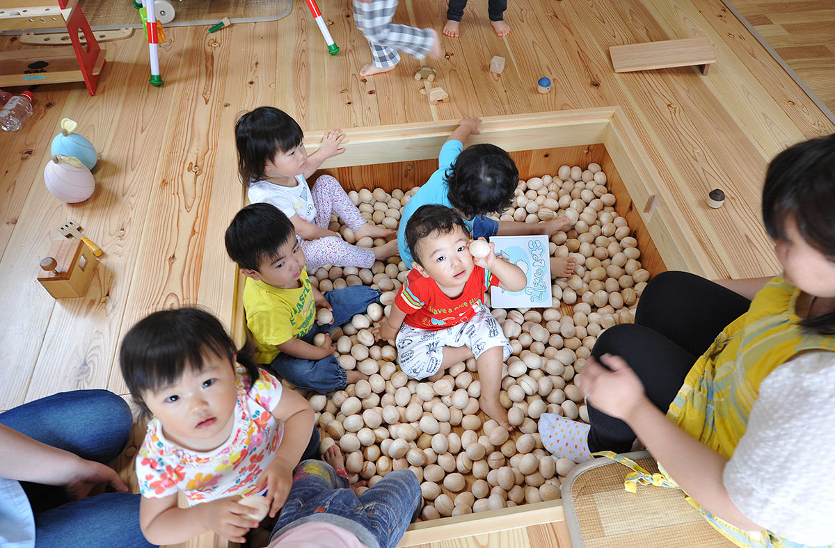 「子供たちは特に桧のたまごプールが大好きなんですよ。お迎えに来たお母さんが『家に帰ると子供から木の匂いがする』なんておっしゃってます。」