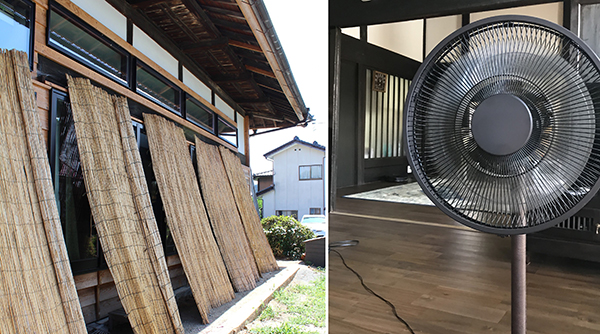 今年の7月末頃、築250年古民家高断熱リノベーション設計した住まい(https://www.i-ienavi.com/archives/7830)に伺いました。日中30度を超え暑い時期です。それでも、お昼頃を除けば、窓にすだれをつけて、各部屋の窓をすべて開けて、扇風機で風の流れを促進すると、クーラーなしでひんやりと過ごせているということでした。住まい手さんは、高断熱の家に生活しだして1年目くらいですが、夏涼しく過ごす基本条件を見事に使いこなし、住みこなしされていました。