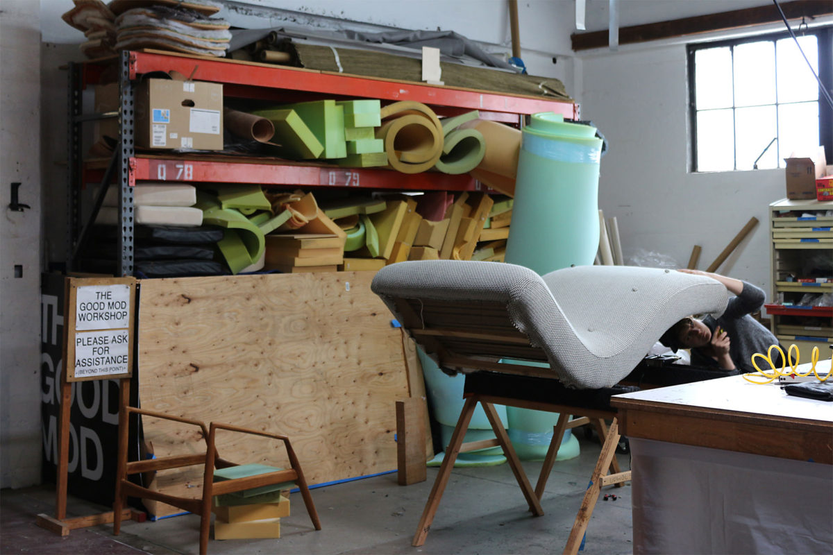 Powell’s Book Storeから歩くこと少し。派手な看板もないビルの4階にひっそり佇む家具屋「The Good Mod」へ。中に入ると別世界。広々とした空間に、ミッドセンチュリー家具が並ぶ。ここの特徴は、家具屋と共に作業場が並んでいること。ここもお店かな?と思うと、作業している人がいたり。売り手、買い手、そして作り手の境界のない空間使いがとても心地良かった。 “自分たちで作る”というD.I.Y精神を間近に感じることができた。