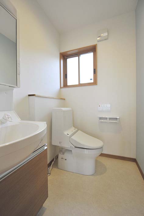左がトイレ、真ん中が洗面所、右側が脱衣と浴室。水周りをすっきりとまとめました。