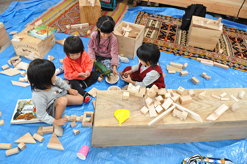 スツールの素材は、最初は檜で試作しましたが重さが気になったので、レッドシダーや杉で試作を重ねて、杉に決定しました。お子様が運べるように軽さも大事です。