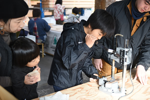 今回はヤスリがけ→焼印→塗装と簡単な作業でしたのでお子さんも一緒に楽しめました。