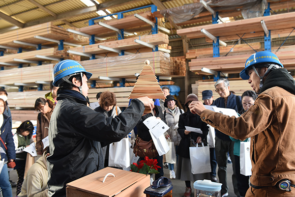 木が原木から製材されて、実際に家になるまでを見学できるこのツアーは大好評。私どももこのような機会をこれからも設けていきたいと思います。こちらのツリーもきれいに仕上がりましたよ。