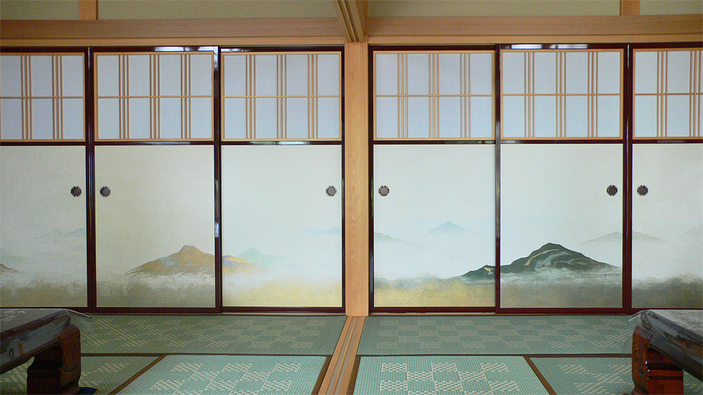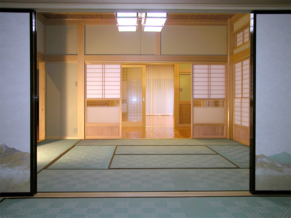 302間続きの本格和室は客間として使用。畳は御殿表畳。襖も通しで1枚の絵のようになっています。