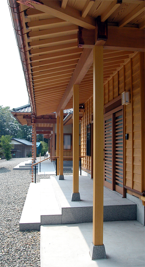 泉の正工務店がその大役を任され、今回の普請に。伝統と格式、自然との調和が求められるだけに、慎重な設計が求められましたが、山崎社長、そして棟梁である馬上正さんが見事にその大役を果たし、居住性、快適性と格式を併せ持つ儀式殿と宮司職舎が完成しました。なお、棟梁である馬上正さんは2004年の「ふくしま棟梁賞」を受賞。その技術が高く評価されています。