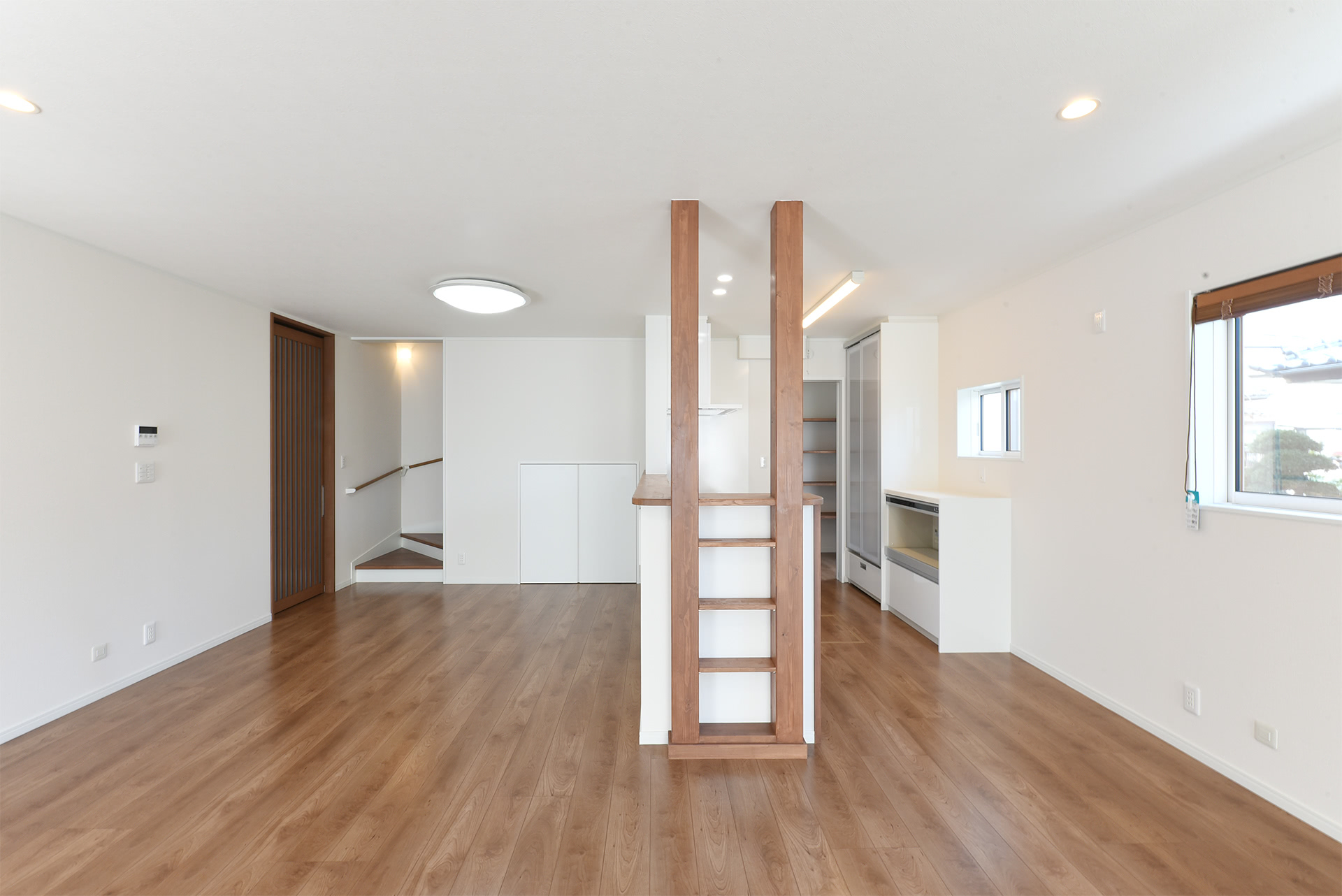 キッチン奥には便利な食品パントリー。階段下にも収納スペースがあります。