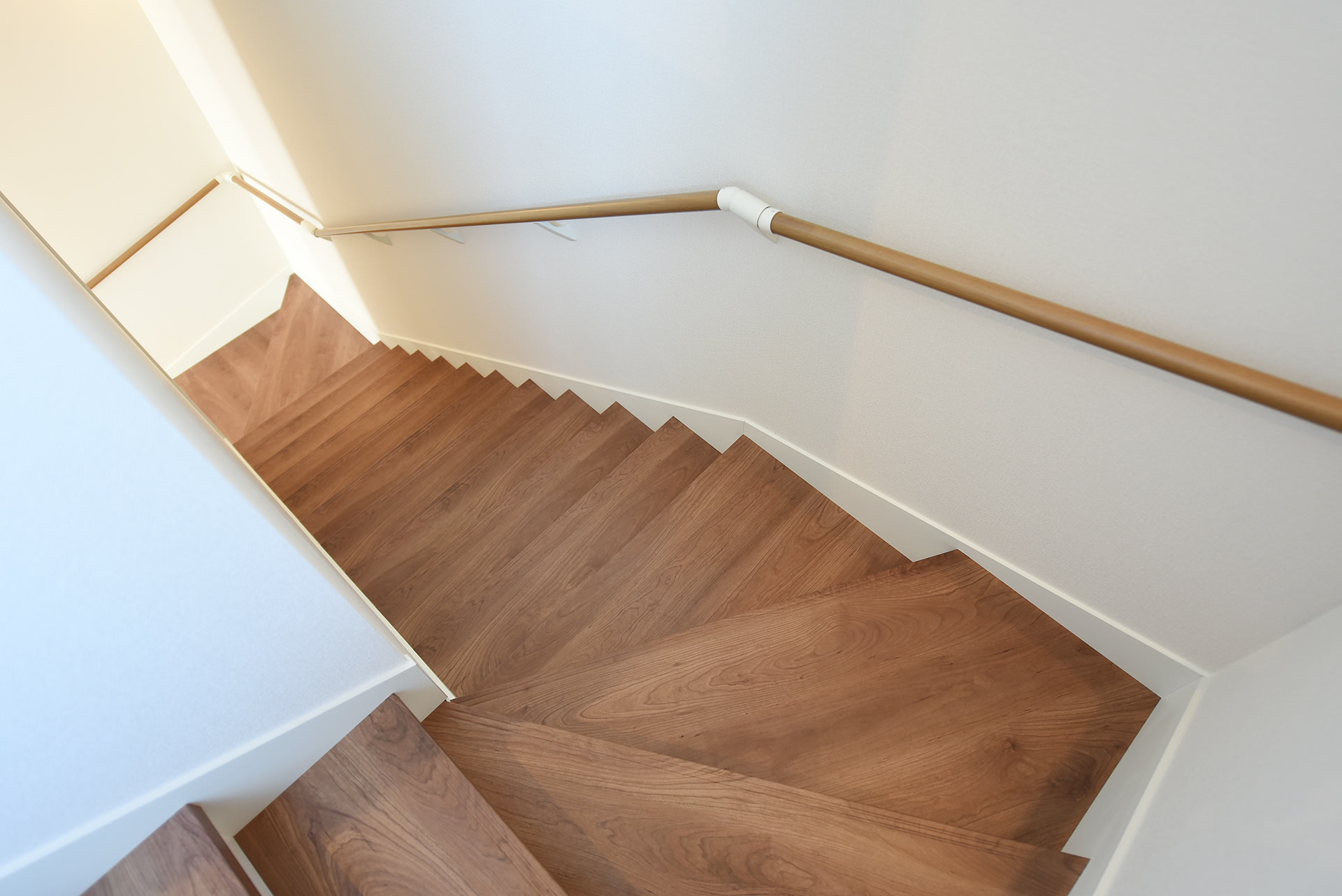 奥様からご要望の「やさしい階段」は、蹴上を低く段数を多く設定しゆるやかに仕上げました。