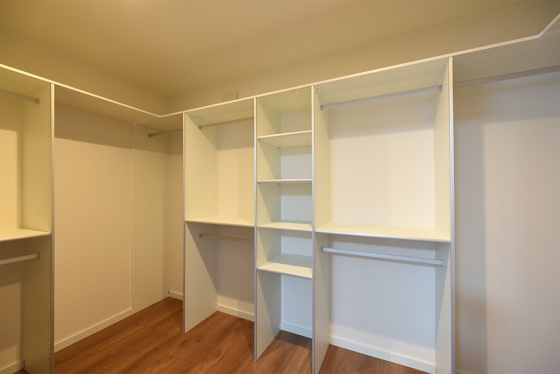 収納④ 主寝室ウォークインクローゼット。奥様用とご主人用とそれぞれスペースを分けています。