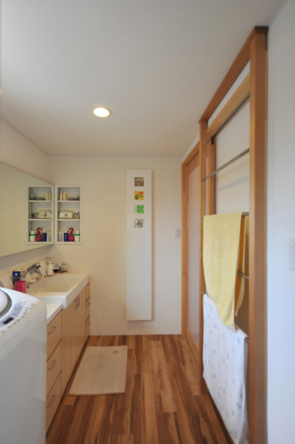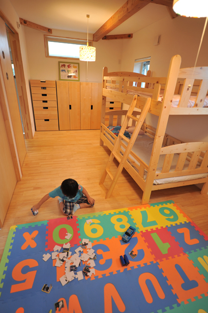 「太陽光発電も考えましたが、基本スペックを最初に上げて、あとから余裕ができたら買えばいいと思いました。」とご主人。16k高性能グラスウール120ミリと硬質ウレタンフォーム50ミリの2つの断熱材を組み合わせたハイブリット仕様でQ値=1・3と超高断熱化を実現、冬もエアコン2台で家中が均等にあたたかく、一度暖まると快適な温度を長時間キープするので電気代も安く上がったそうです。長期優良住宅先導モデルの認定も受けています。