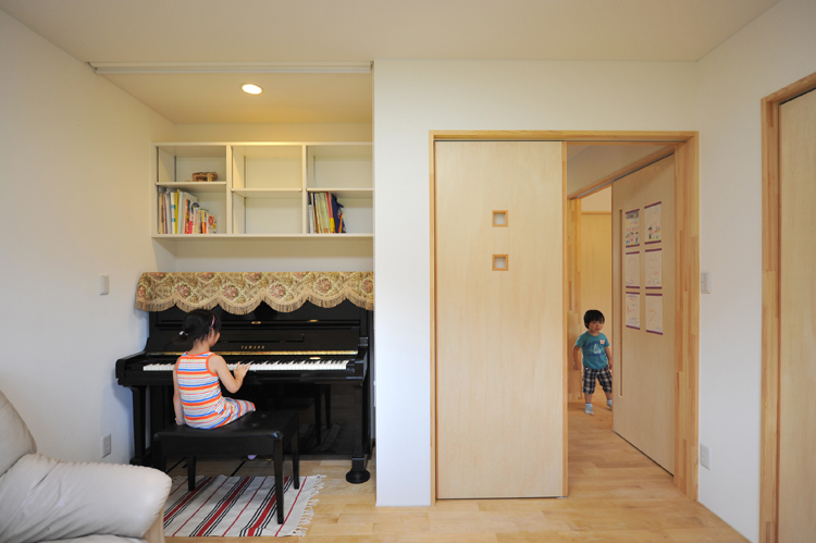 リビング隣はフリースペースとして使います。ピアノもあるのであえて和室にはしませんでした。