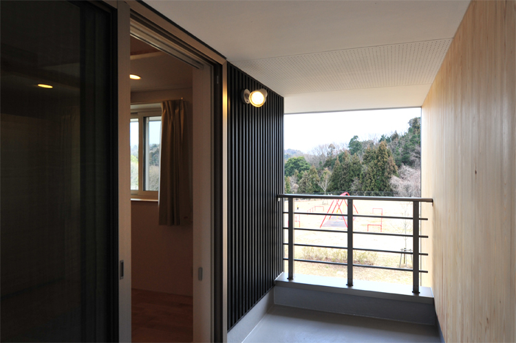 南側に大きな公園があり開放感があります。プライバシーを確保するため採光をさえぎらない程よい木の目隠しを配置。