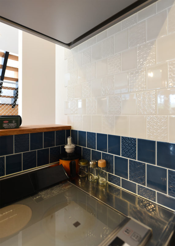 キッチンにはLIXILの和柄のタイル。