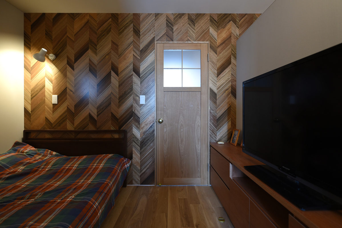 主寝室。ウォークインクローゼットからスタディスペースへと回遊できる作り。