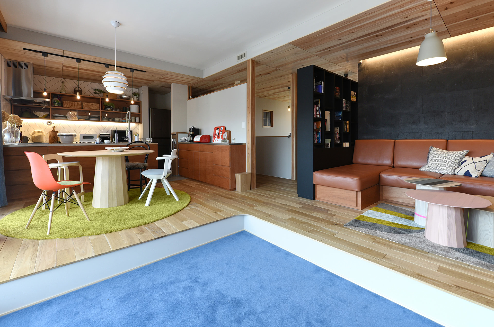 リビング・ダイニング・キッチンに1段下がったピットリビングも。