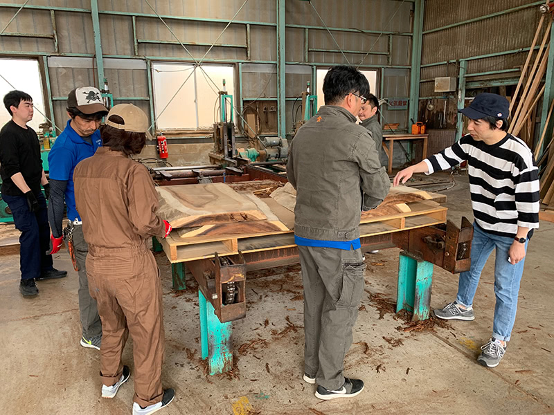 まずは、同じものは2つとない個性豊かな一枚板を抽選で選んで作業開始。