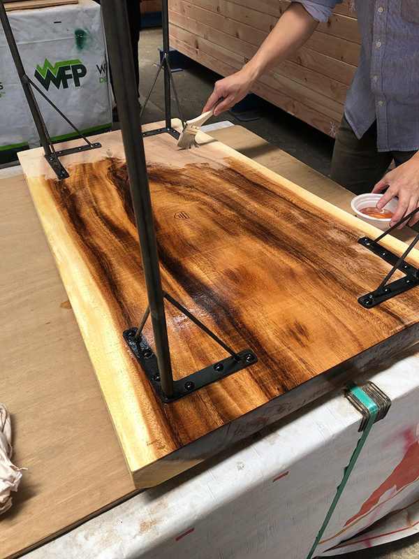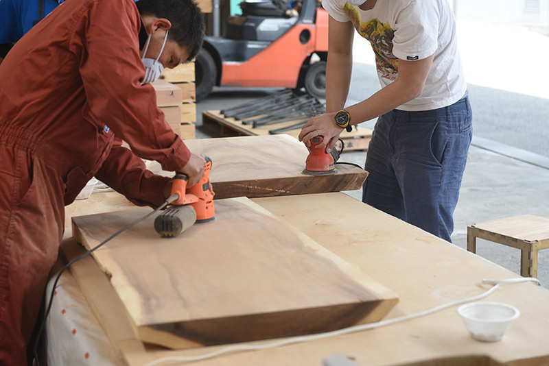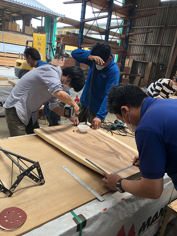 小さめとはいえ一枚板なのでかなり重量のある大物(カフェテーブル)を、2時間半で仕上げるというハードモードなワークショップでした。