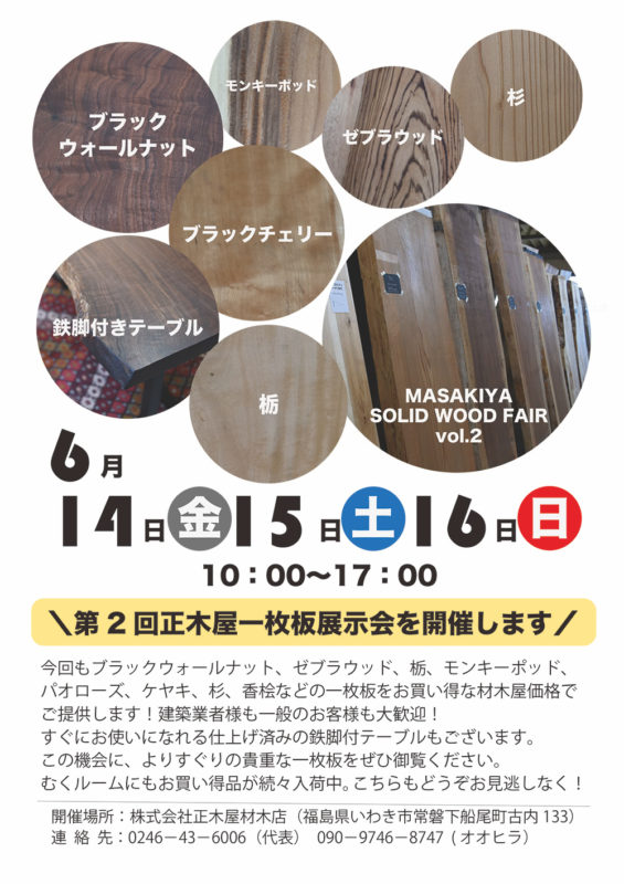 昨年10月に初めて開催して好評いただきました正木屋無垢板祭。