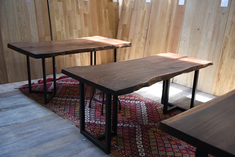 ■仕上げ済みの鉄脚付一枚板テーブル(オスモ/トリプル塗装)が展示会特価