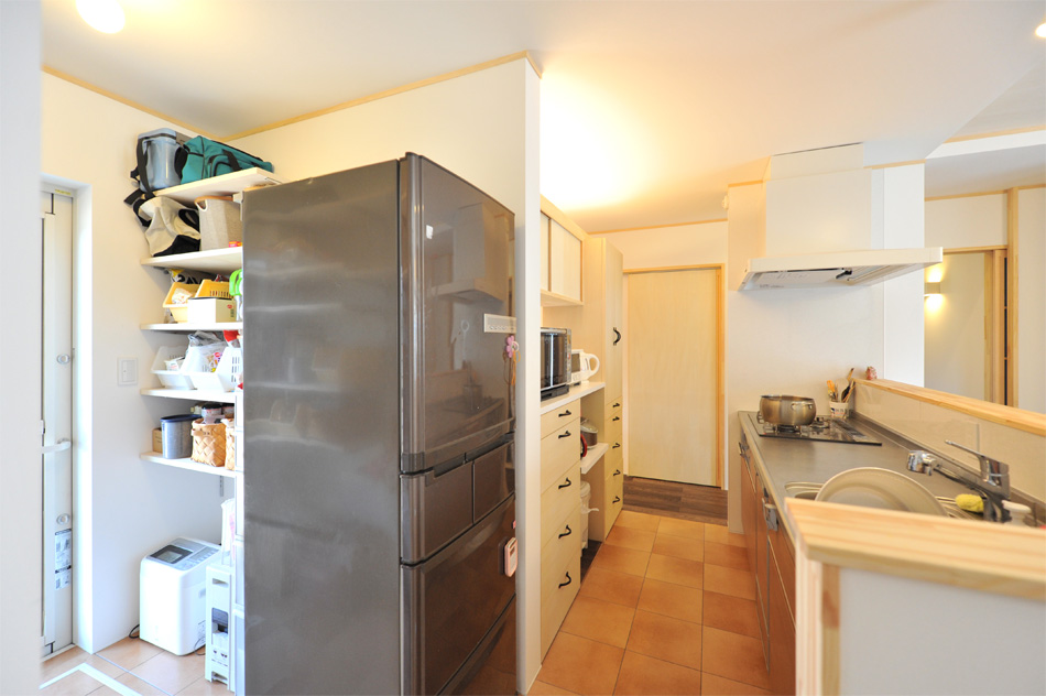 11キッチン裏その2:パントリー(食品庫)。動線が楽になるようキッチン回りに家事機能を集めています。