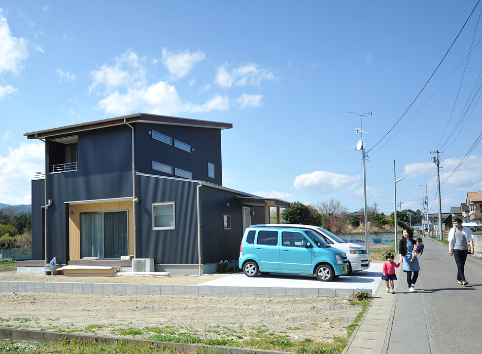 7単調になりやすいガルバリウム鋼板仕上げだが、屋根の角度の違いを作り表情を持たせている。