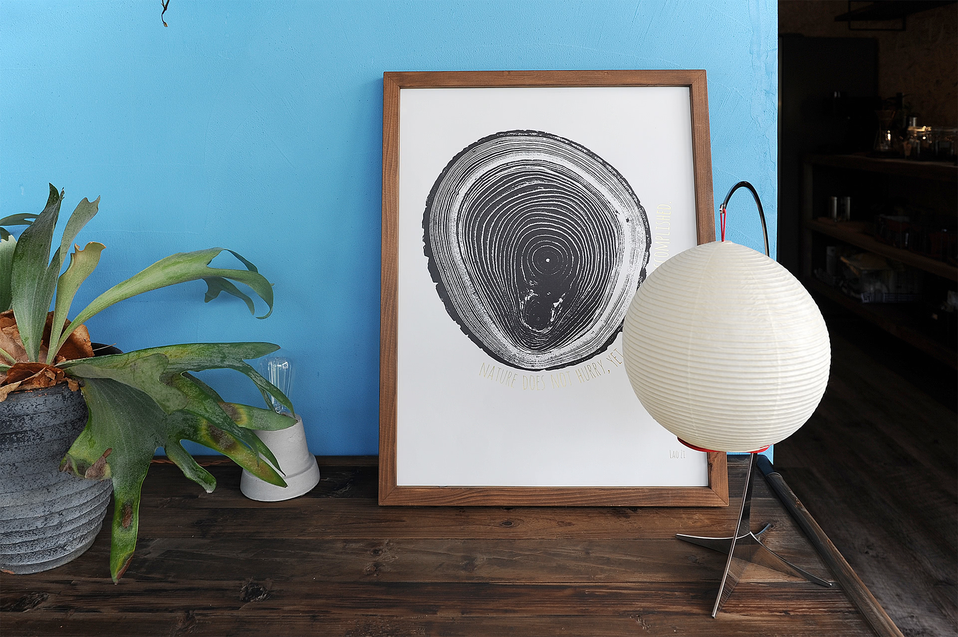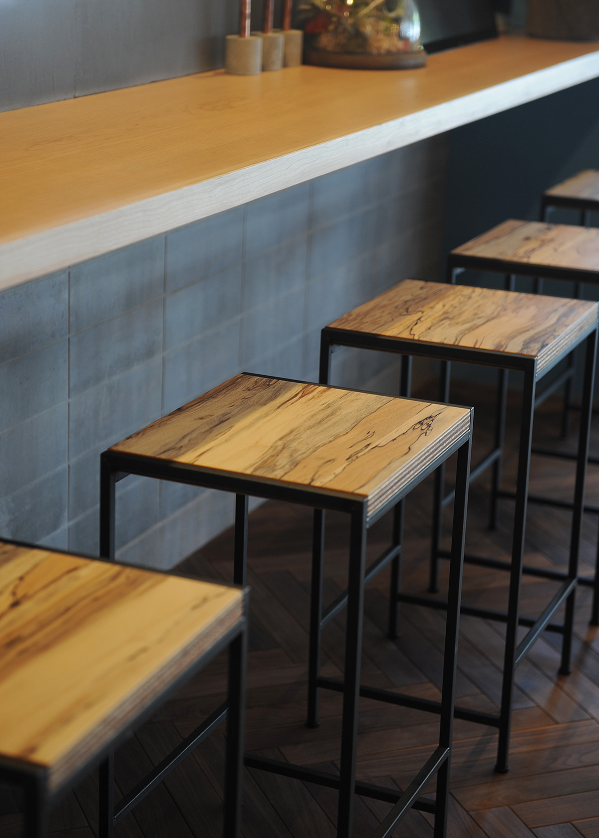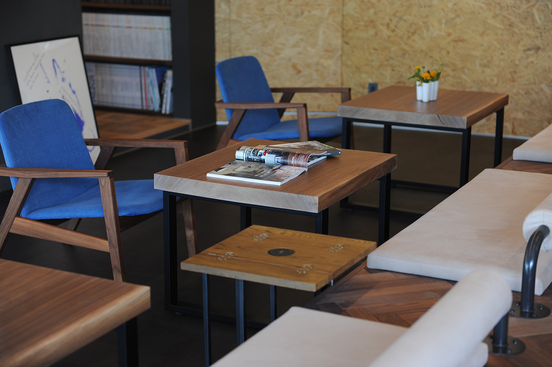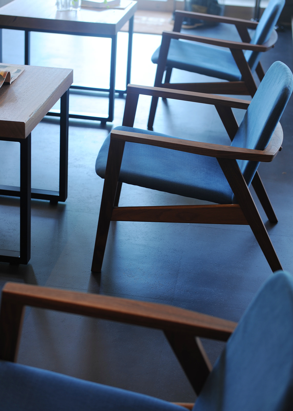 店内ではウォールナット材のテーブル・イス・ソファー・雑貨に至るまで、シンプルかつ洗練されたデザイン家具の展示をしています。