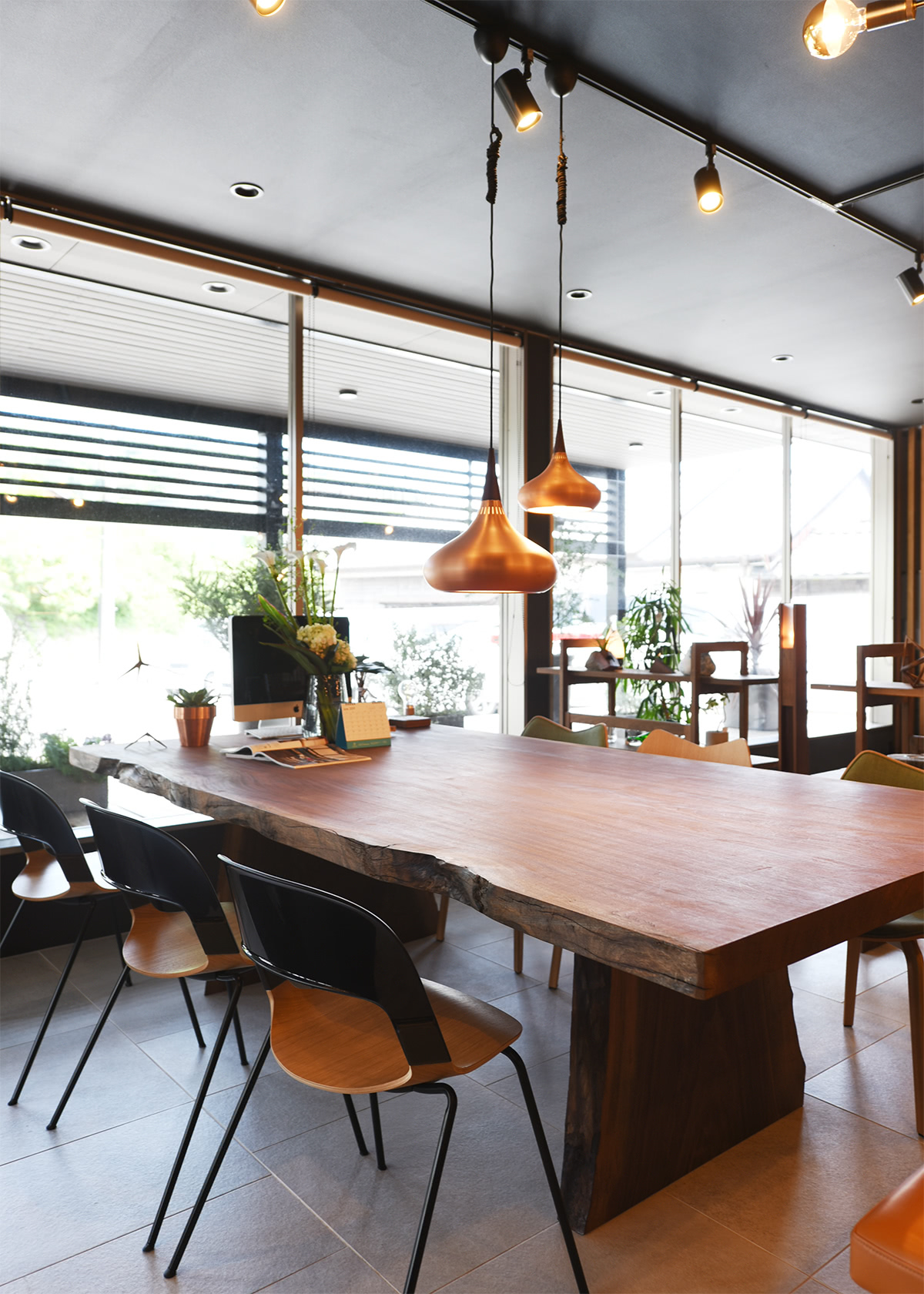 開放的でシンプルな空間に映える上質なインテリア家具を体感できるデザイン×オフィス。遊び心や。どんな暮らしを楽しみたいかを引き出し、感性を刺激するカフェ空間。ゆったりとした時間の中でコーヒーを飲みながら想いをお聞かせください。