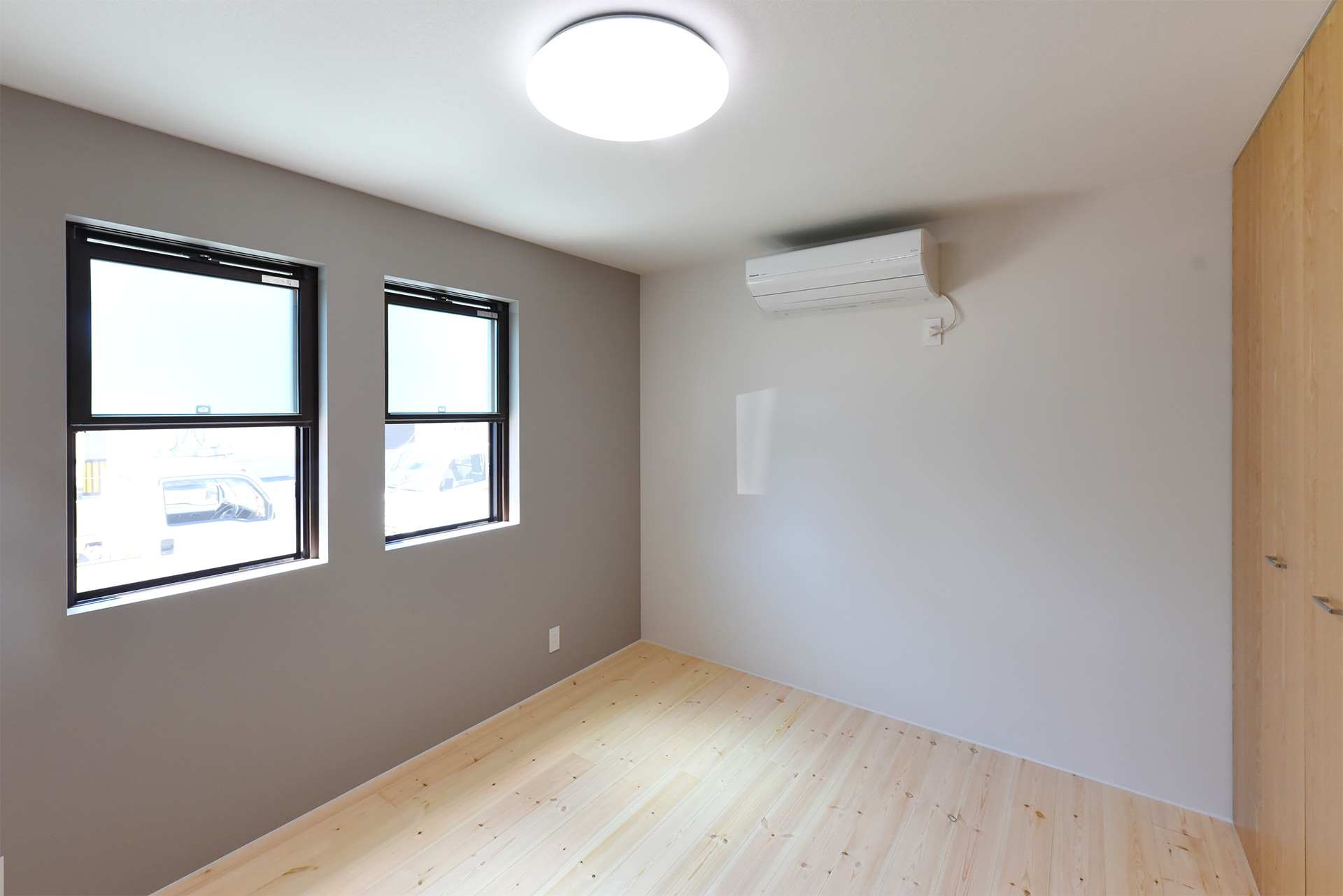 居室の壁色も部屋によって変えます。主寝室はペールグレーで落ち着いた印象に。
