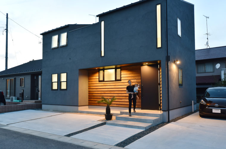 また、様々な新しい提案で「おしゃれでかっこいい」もクリア。左官跡が印象的なグレーの塗壁外壁、フルハイトのドア、モルタルのキッチンカウンター、スッキリとしたアルミの極細巾木と廻縁、窓枠仕上げ、マットなブラックでスタイリッシュな雨樋など細部まで手を抜かない提案と施工。