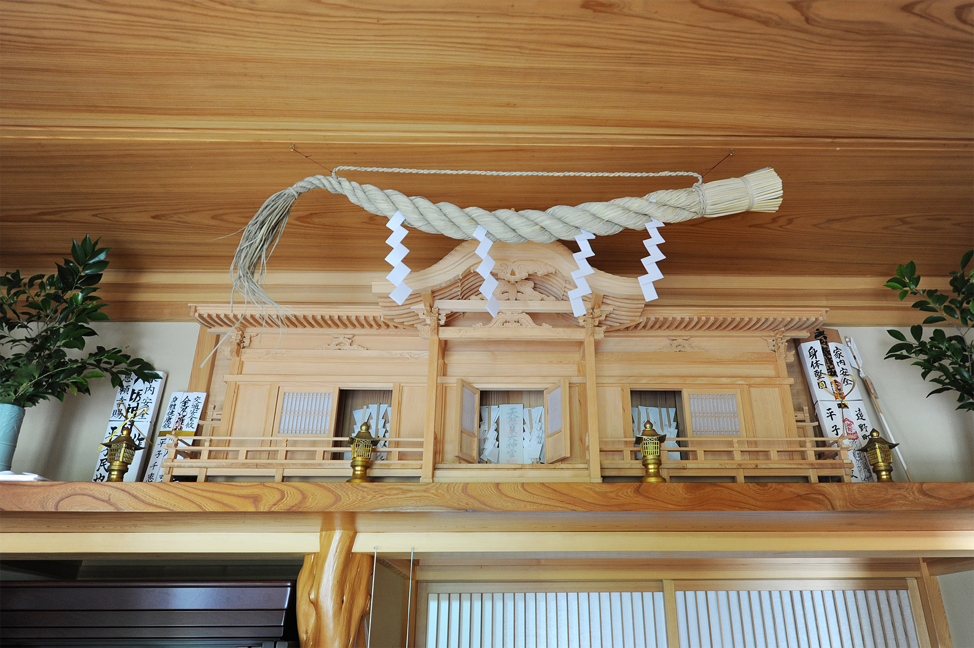 神棚は社長のお手製。仕事の合間に少しづつ製作したそうです。