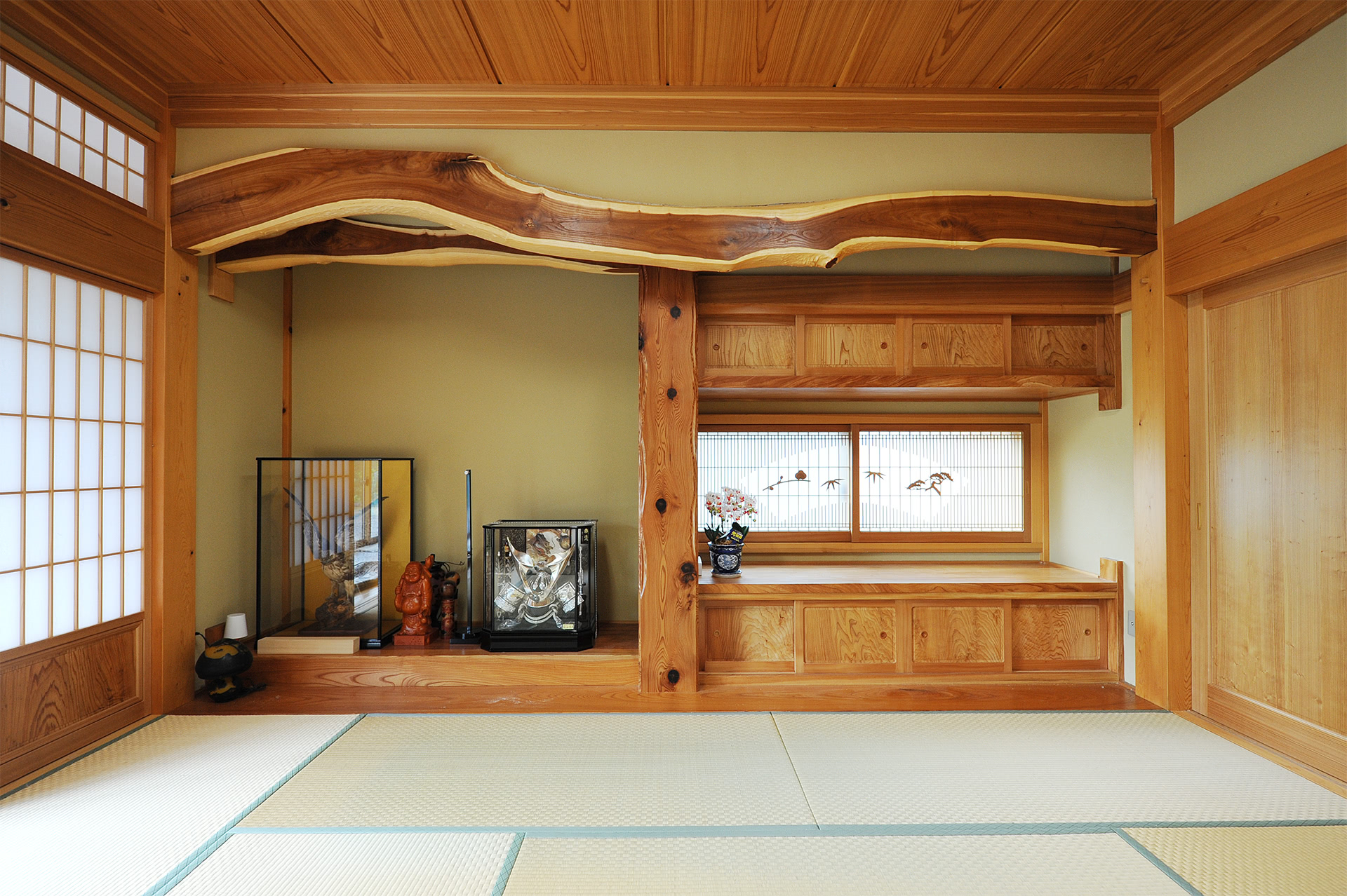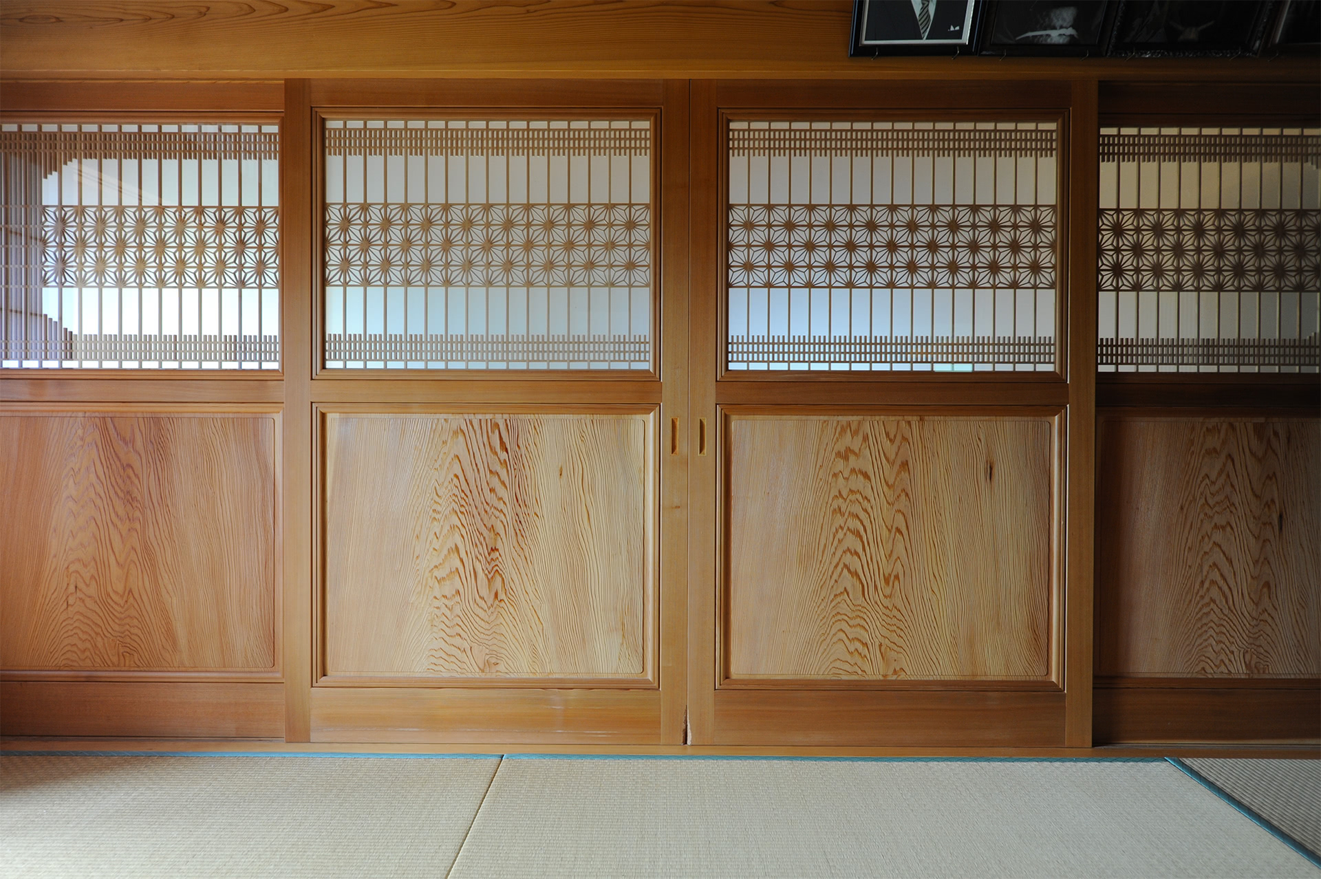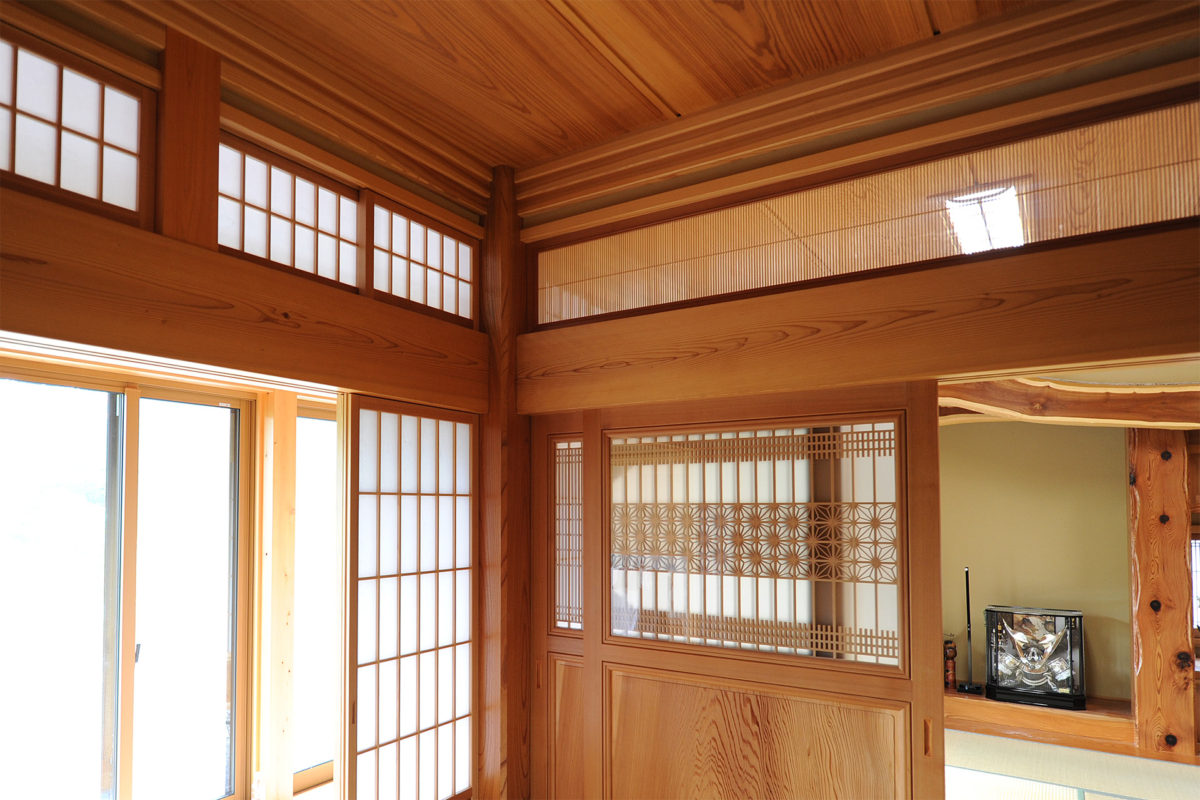 手の込んだ欄間や建具の細工が美しい。建具はすべて遠野の折笠木工所。