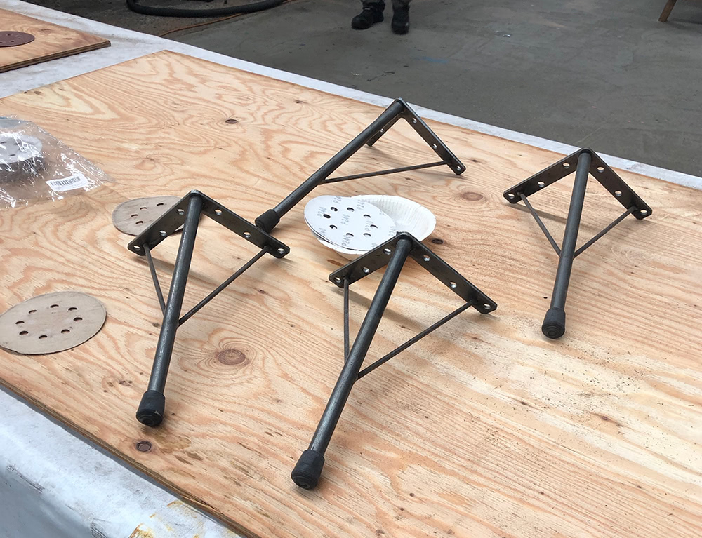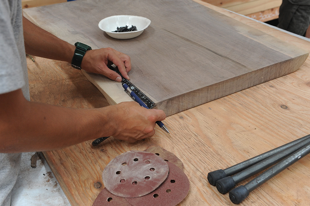 参加者の「ダイニングじゃなくてリビングテーブルが欲しいんです」の声に、マサキヤ鉄工所が緊急召喚。あっという間に鉄脚をカット。(※実在しません)