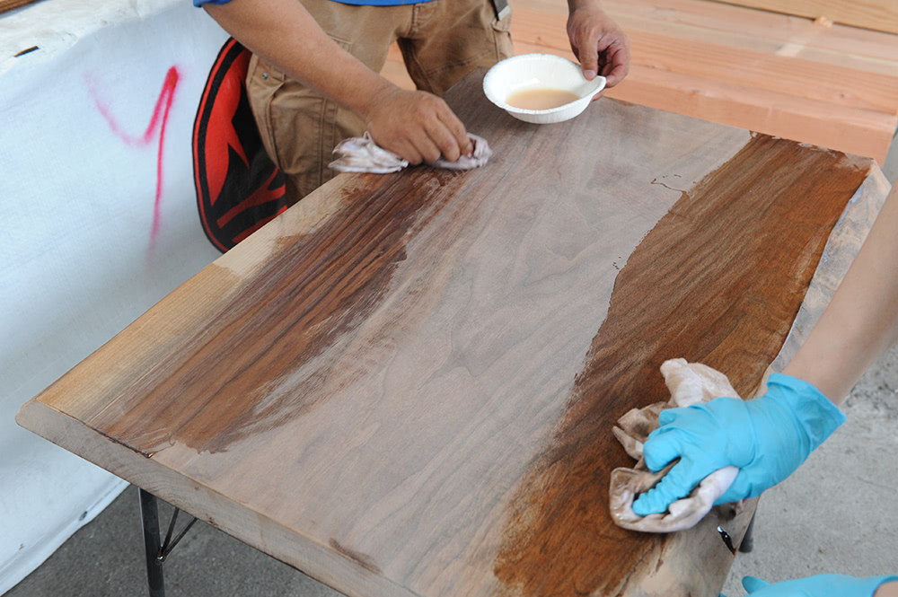 前回のモンキーポッドの一枚板ワークショップの定員がすぐ埋まってしまったので、今回も一枚板のカフェテーブルをお題にDIY教室を開催しました。今回はブラックウォールナットです。
