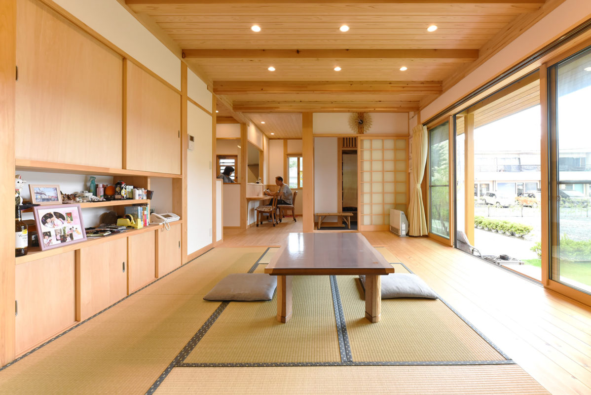 奥にもう一つの和室。襖は引き込みで大きく使えます。長期優良住宅認定の性能がありますので、1階をワンルームのように大きく使っても、冬場は寒さを感じなかったそうです。