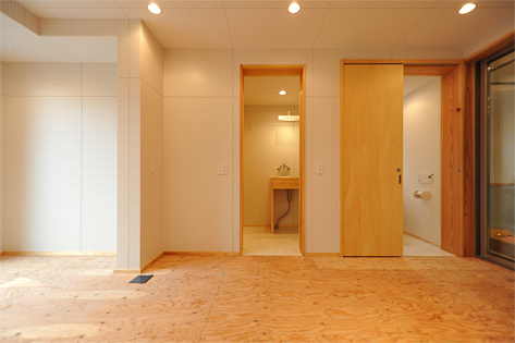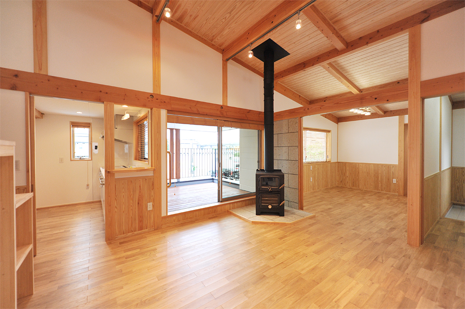 主な内部仕上:天井)杉羽目板 壁)スイス漆喰カルクウォール 床)ナラフローリング