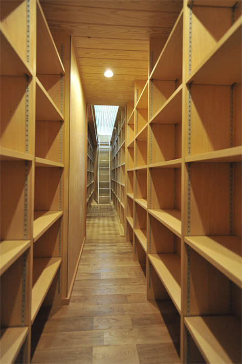 正面がテレビスペース。その後ろ側が上下とも書庫になっている。(左上はロフトスペース)