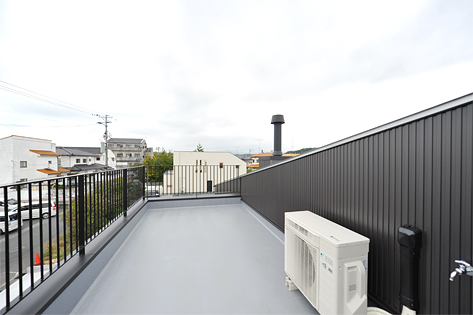 「面積のボリュームがあり、1〜2階の平面外郭がほぼ同形状ということですので、そのまま一般的な高さで造ると、とてもスケール感がでてしまいます。室内の天井高さと階の高さの加減で、外観のボリューム感を極力抑えました」とKD設計の佐藤さん。大きめの敷地に、浮かないようにまとめあげた外観デザインが、かっこよさを醸し出す工夫になっているようです。