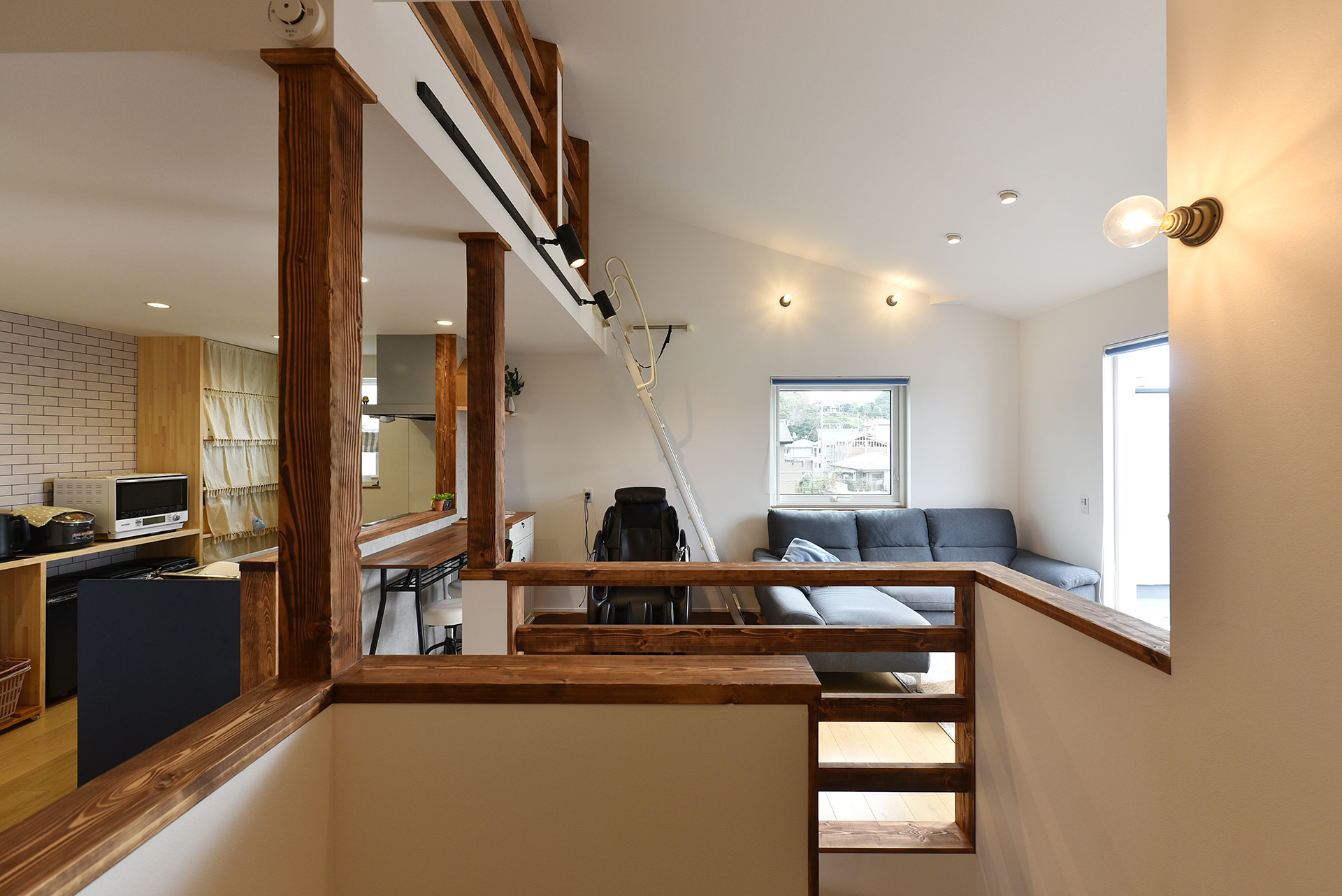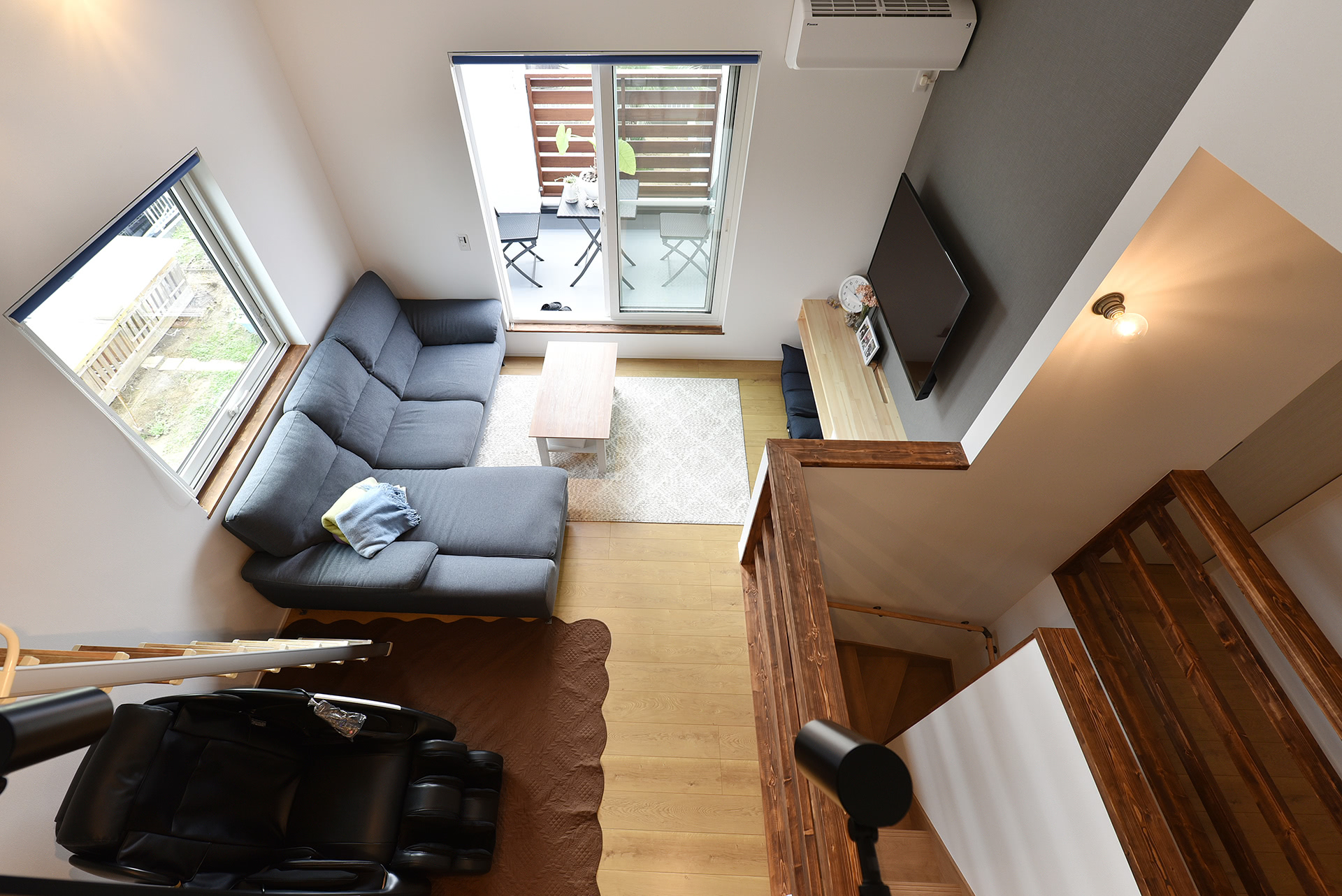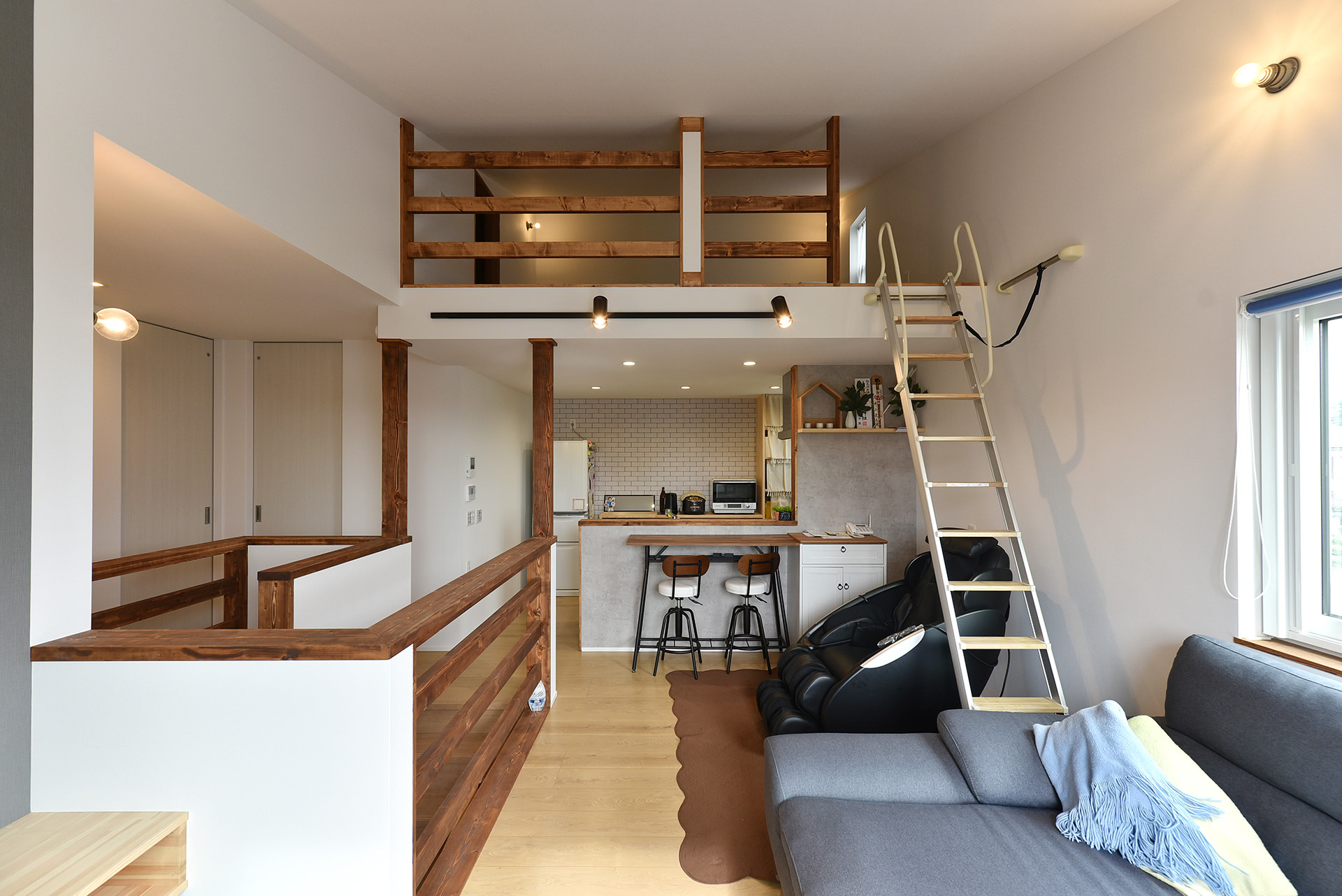 LDKはロフトを設けて縦に面積を広げています。マッサージチェアはご主人から奥様へのプレゼント。愛が溢れています。