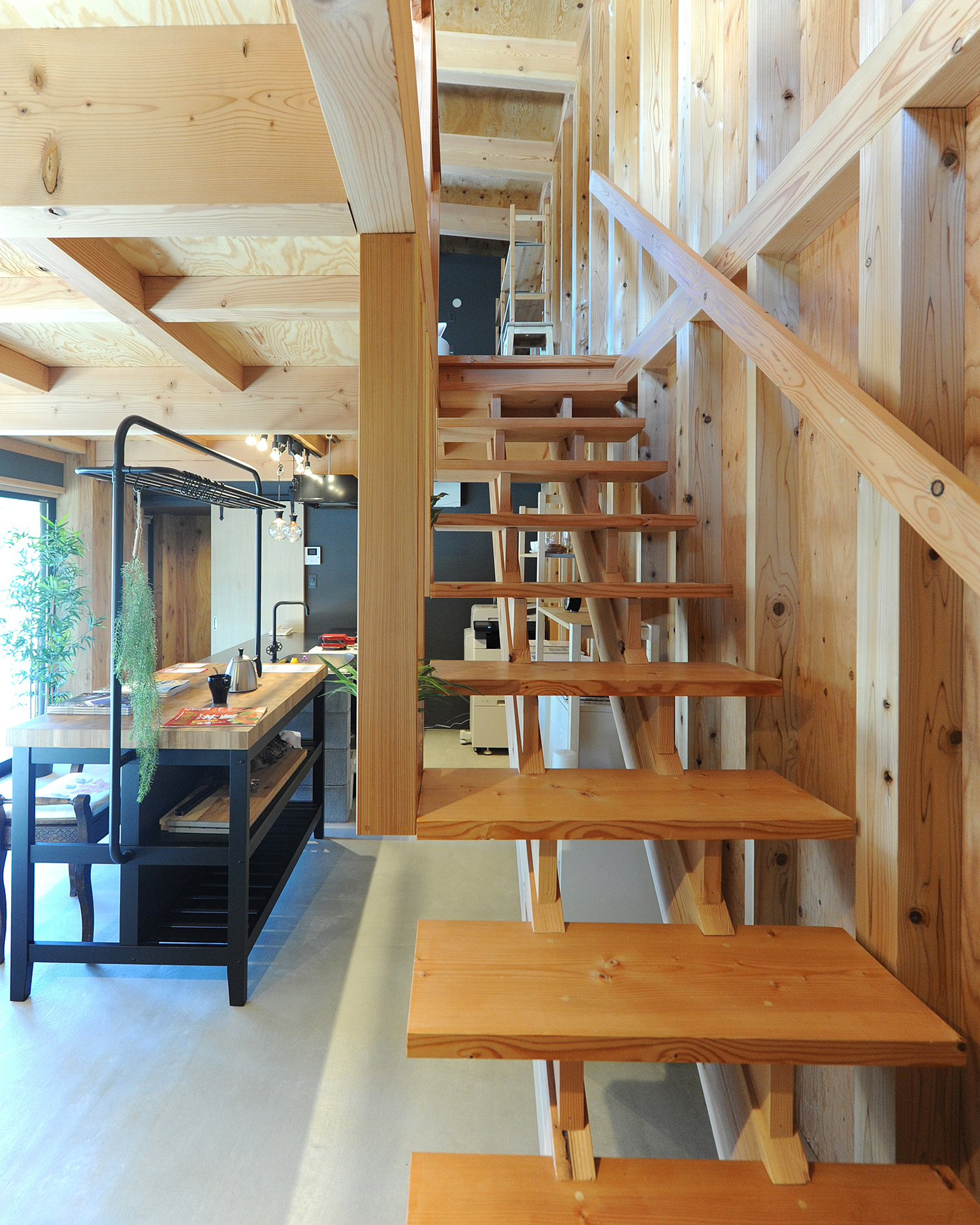 2階へも仕切り無しでつながっていきます。1階と2階を通してワンルームのようなつくり。