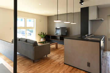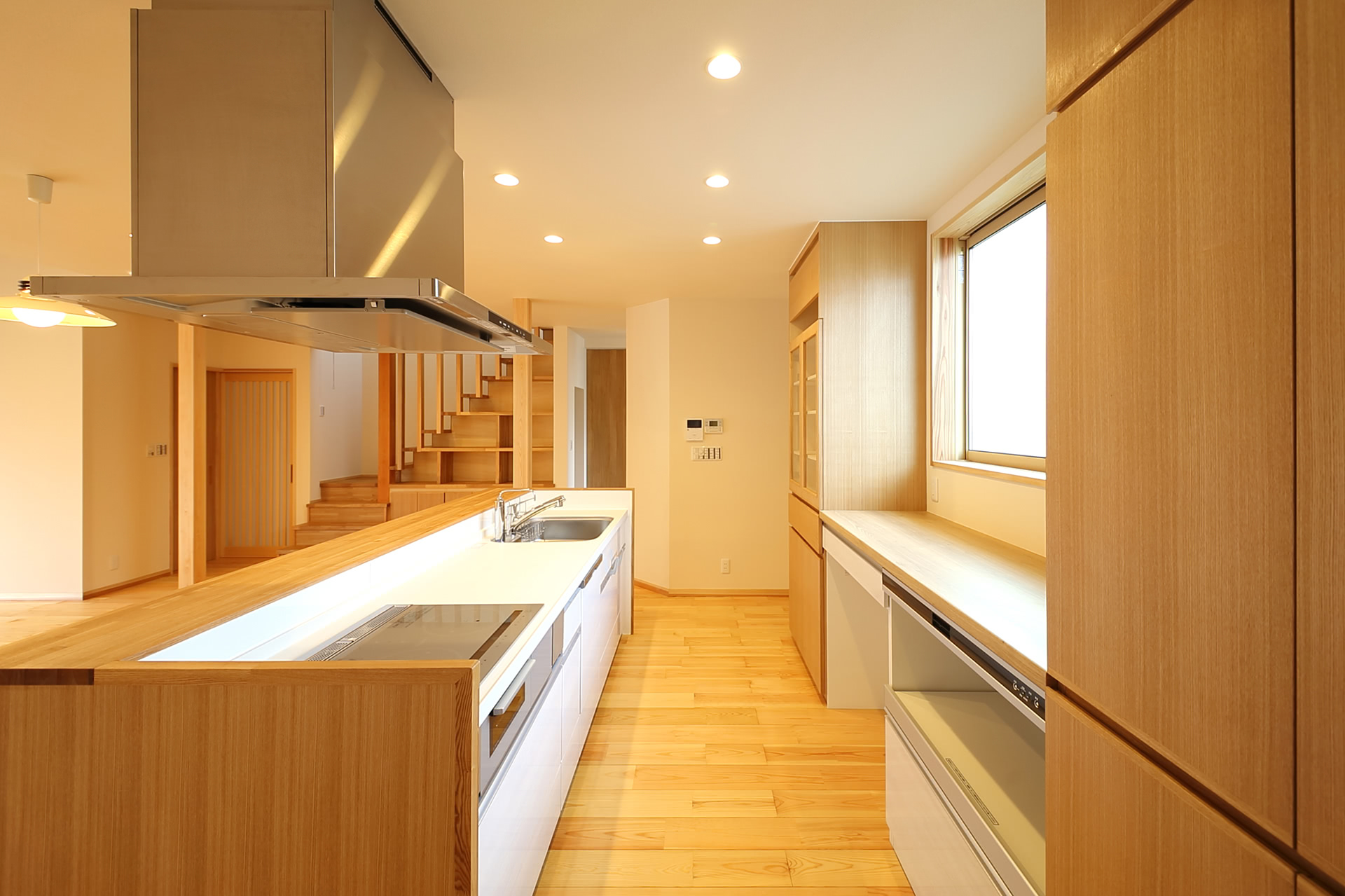 様々な条件から非常に短期間の設計と施工で、つくりながら考える状態でした。短期間での住まいづくりでしたが、研究熱心なご主人による、住まいのデザインや素材選定など、率先してサンプルなど多数吟味いただきました。また、以前の住まいリフォームの際で感じていた改善点も新しい住まいへ反映しています。S×W工法を利用した長期優良住宅です。(環デザイン舎 北瀬幹哉)