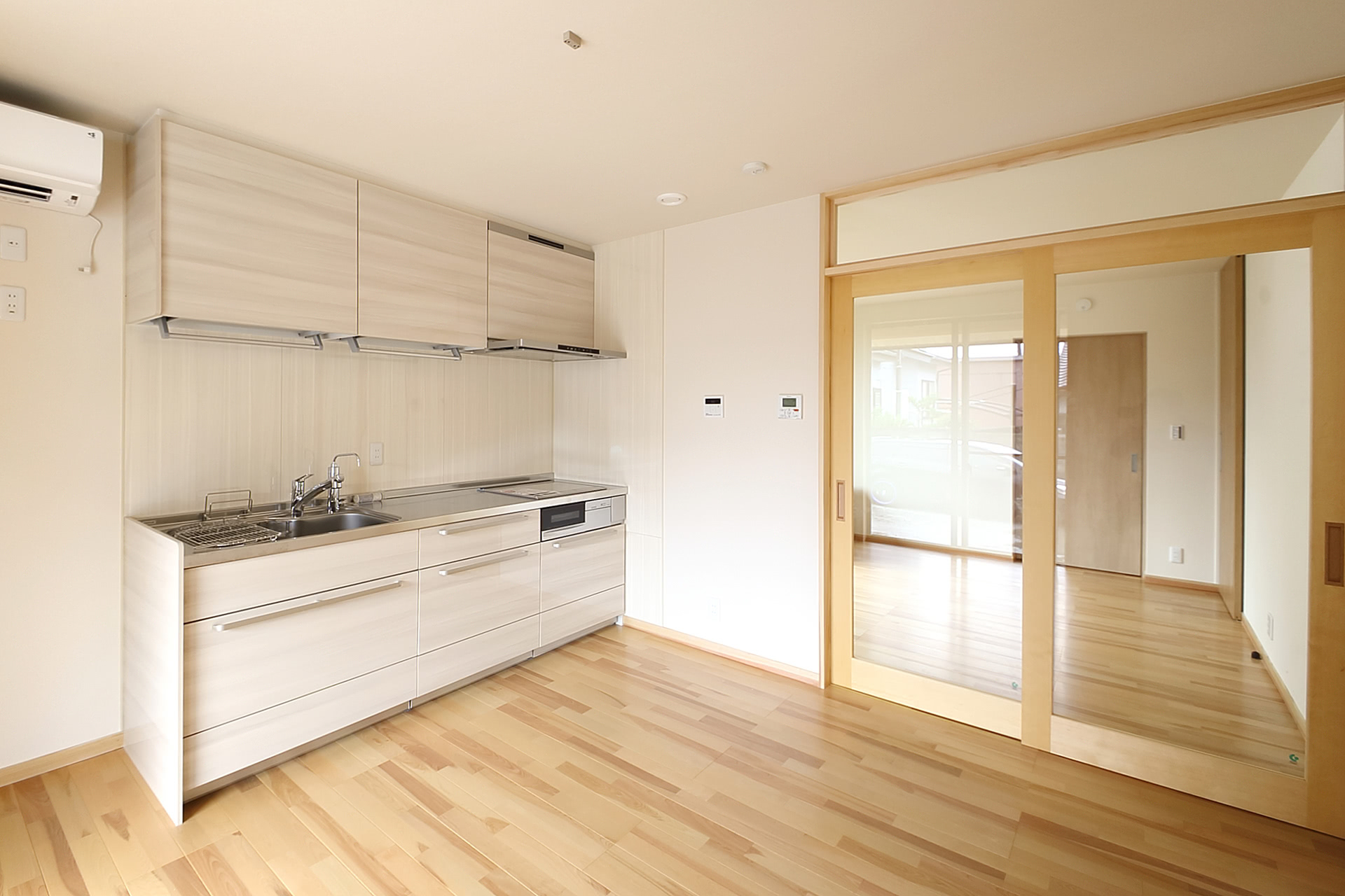 お母様のLDKと光を通す引戸の奥に寝室。