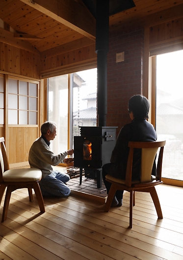 家の大きさも「2人暮らし」に過不足のないコンパクトな大きさであり、環境に付加を与えません。いわきの豊かな自然を満喫できる、見た目以上に贅沢な家に仕上がりました。小細工のない、ありのままの自然の家。そこには、まるでご夫婦の生き方そのものを体現したような、シンプルで豊かな空間が広がっていました。