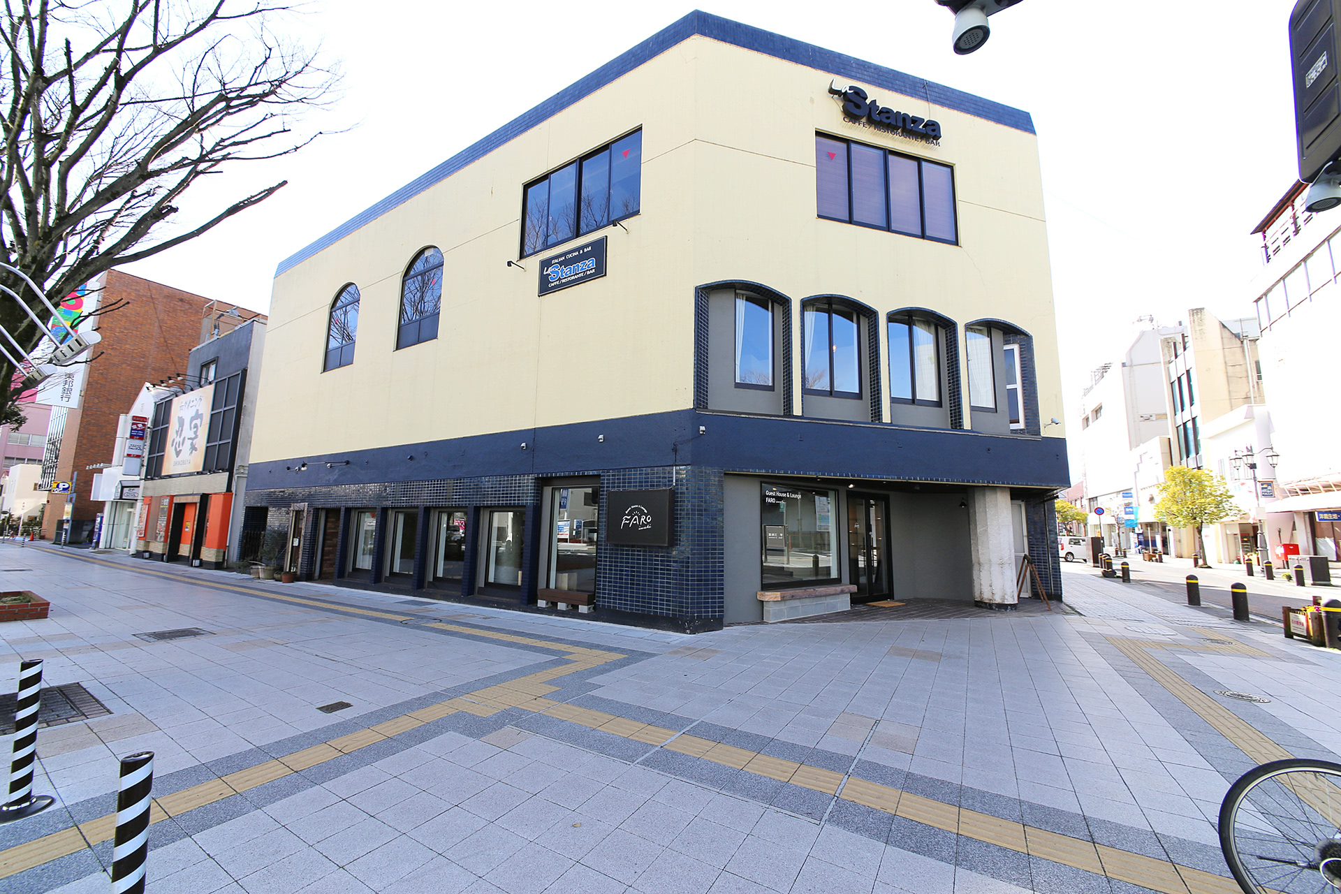 いわき駅前のイタリア料理店「La Stanza」の入るビル(昭和40年代竣工)がゲストハウス&ラウンジとして生まれ変わりました。名前は「FARO」、イタリア語で灯台を意味します。いわきを訪れる人のその先を照らす灯台でありたい、という思いが込められています。