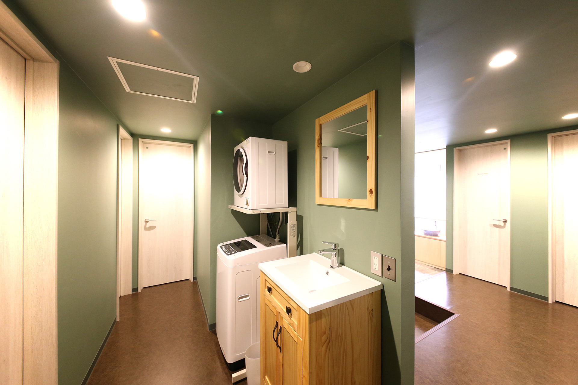 共同利用の洗濯乾燥、シャワーブース、洗面所などを完備。