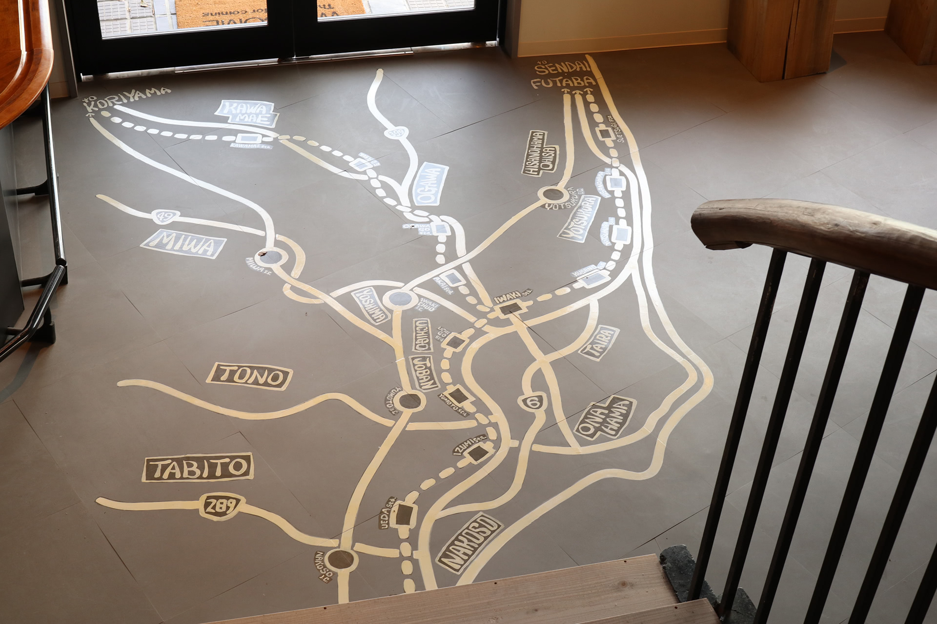 入り口を入るとユアサミズキ氏によるいわきの案内イラストがお出迎え。