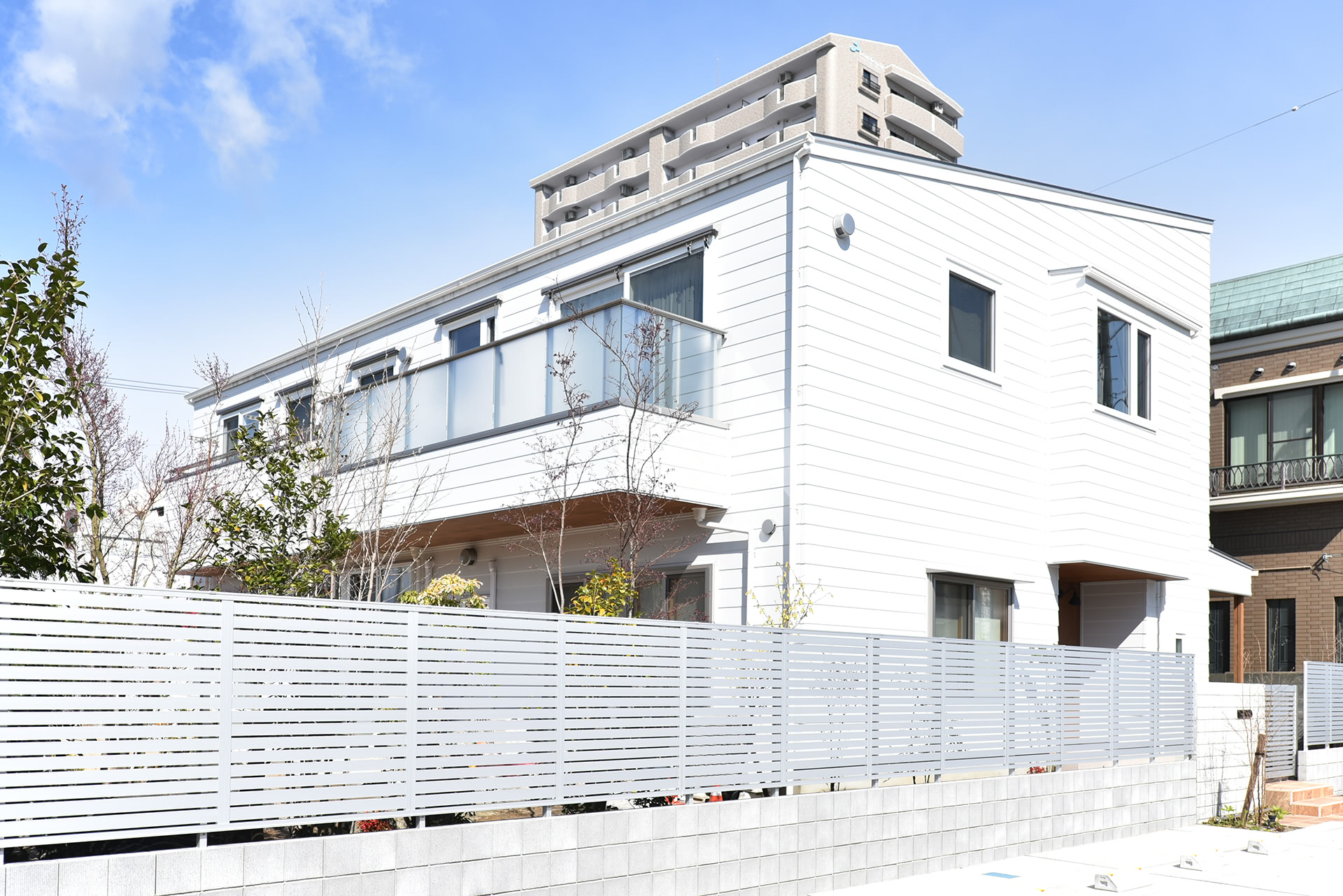 広い敷地に白さ際立つ建物